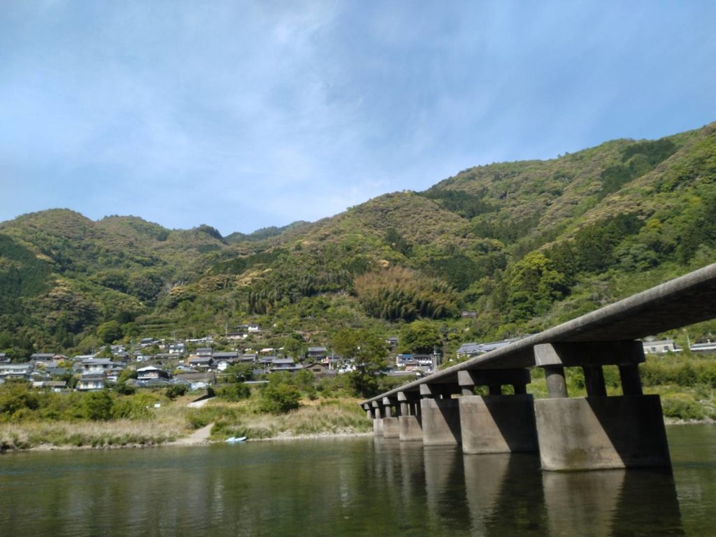 「竜とそばかすの姫」で有名になった仁淀川上流の浅尾沈下橋へ。