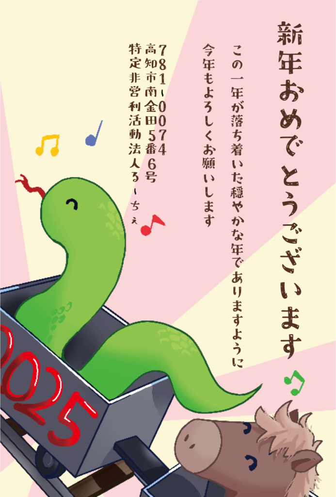 新年おめでとうございます 新年のごあいさつが遅くなってしまいました💦 利用者の皆さんへの年賀状、今回は利用者さんのFさんに描いていただきました✨ 楽しい雰囲気が伝わる年賀状ですね✨ 今年が穏やかで素敵な年になりますように😊 ツイート